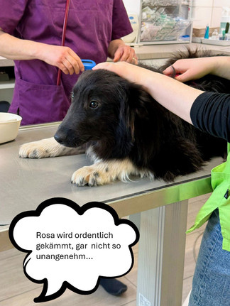 Dementsprechend groß waren Angst und Unsicherheit, ABER: Pina, Rosa und Emma waren zwar angespannt, doch ruhig und kooperativ, haben keinerlei Aggressionen gezeigt und alles mitgemacht, so gruselig es ihnen auch vorkam.